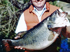 雷蒙德伊斯利 Lake Casitas 加利福利亚州,用8磅拉力的钓线钓获了重达21磅8盎司的大嘴鲈鱼,这是多么令人难以置信的成就!这尾中21磅8盎司的大嘴鲈鱼,这也是自1932年佩里的钓获的记录鱼后被钓获的最大的大嘴鲈鱼。